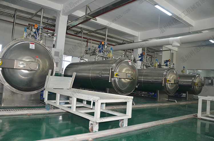 科信機械生產的殺菌鍋是一種間歇工熱水殺菌設備,它用高溫壓的熱水作加熱介質,對已包裝的食品進行滅菌。在滅菌的過程中,為使食品迅速均勻受熱,可采限熱水強制循環、食品包裝物回轉或熱水噴淋等措施,從而對食品進行高溫短時間滅菌這樣可使食品保持更佳的品質、風味和色澤,更大限度的保持食品的營養成份。